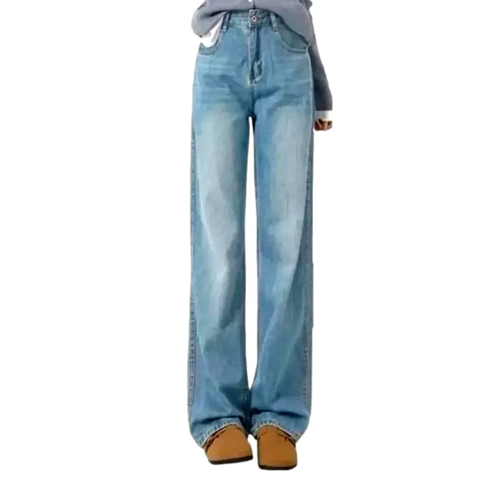 Lined Wide Fit Casual Women's Jeans - Light Blue