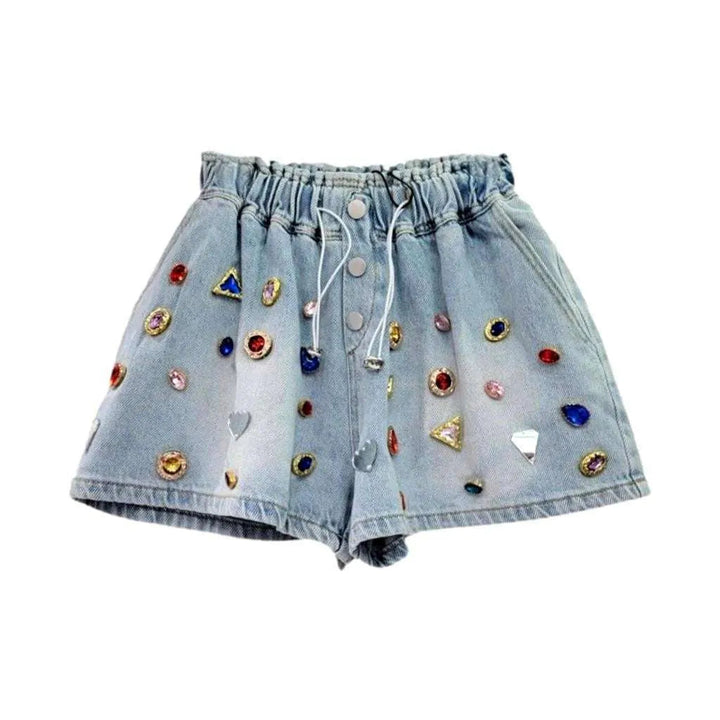 Multi-color rhinestone denim shorts